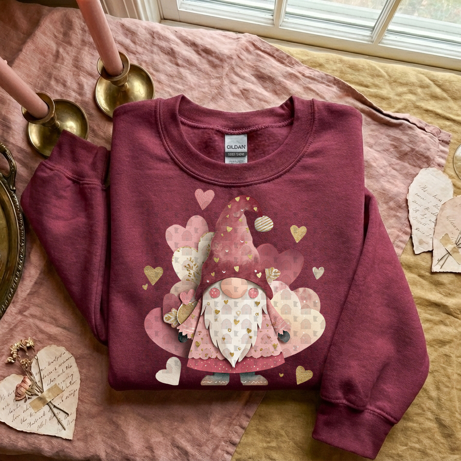 Valentine Shabby Chic Gnome Torn Paper